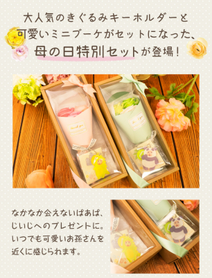 昨年も好評をいただいた「きぐるみキーホルダー」と「ミニブーケ」がセットになった母の日ギフトセットが今年も登場致します。