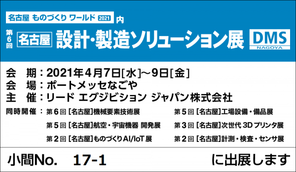アクセラテクノロジ株式会社(所在地:東京都渋谷区、代表取締役社長:進藤達也)は、2021年4月7日(水)~4月9日(金)にポートメッセ名古屋にて開催される『第6回名古屋 設計・製造ソリューション展』に出展します。