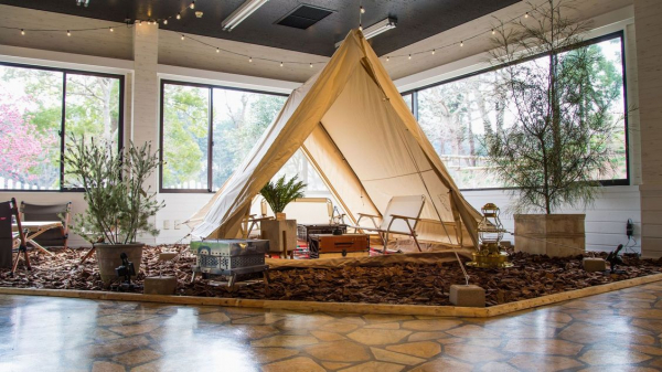 建物内には、テントを張ったテントカフェもございます。