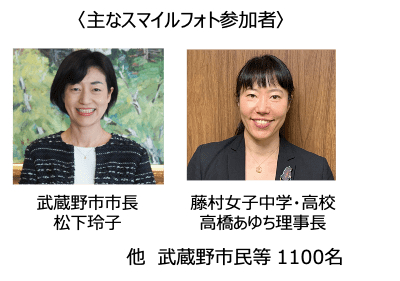 プロジェクトの企画の一つである、“武蔵野スマイルフォト”は、長引くコロナ禍の中、岩渕真奈選手が本市に関わる皆様に向けて激励メッセージ動画を届けてくれたことをきっかけに、本市からも岩渕真奈選手にお返しがしたいという思いから制作がはじまり、本市民等から笑顔の写真(スマイルフォト)を募集したところ、1,000枚を超える写真が集まり、その写真を組み合わせて岩渕真奈選手のフォトモザイク笑顔アートを完成させました。