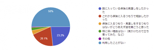 Q3.Q2で答えた保険相談カウンター・窓口を利用したきっかけは何ですか?また、Q1で「利用したこともないし、利用を検討したこともない」「そもそも保険相談カウンター・窓口が何かわからない」は「利用したことがない」をお選びください。