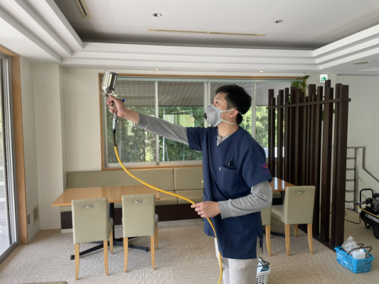 新型コロナウイルス感染症拡大防止対策の一環として、ご来場される皆様にプレーなどをお楽しみいただけるよう、ゴルフ練習場へ銀系光触媒抗菌コーティング『ナノディフェンダーAg+(ナノディフェンダーエージープラス)』の導入の検討相談がありました。