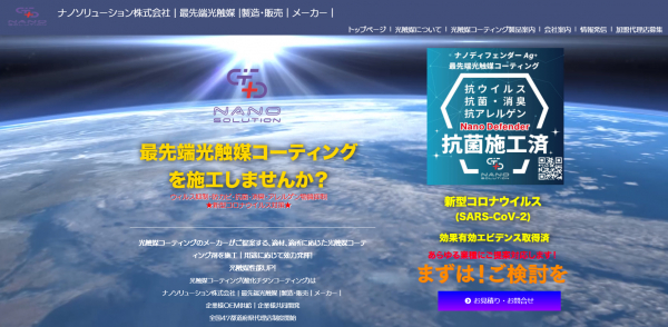 ナノソリューション株式会社は様々な業種様に安心できる空間(ウイルスや菌の接触感染防止対策推進)お届け出来るよう、「光触媒コーティング」の認知度向上を加盟店と密に連携して参ります。また、家庭用「可視光応答型銀系光触媒スプレー」を販売計画もございます。尚、4月から本格的にナノソリューション株式会社は加盟代理店制度(https://nanosolution.jp/kameitenn_bosyu/)にて全国47都道府県へ当社の光触媒普及の活動もして参り、感染予防対策に社会貢献してまいります。