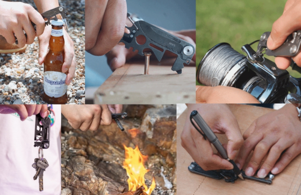 大きさが9cmx3.2cm、厚さ1.1cmと、クレジットカード程の超コンパクトサイズながら、30種類の機能を搭載。アウトドアはもちろん、日常のDIYや災害時も活躍します。