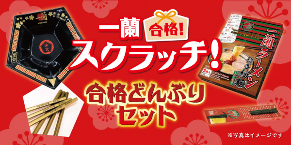 賞品 :・合格どんぶりセット(有田焼 一蘭謹製 合格どんぶり×1、合格鉛筆×2、一蘭箸×1、博多細麺ストレート5食入×1)