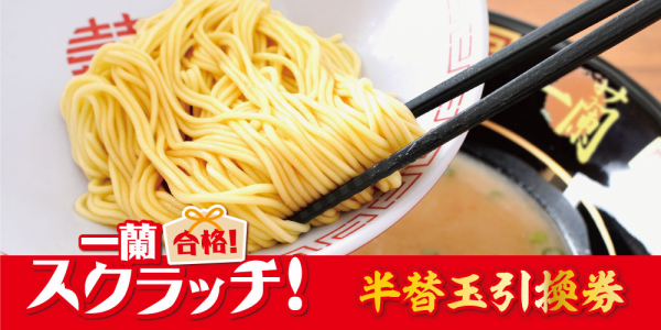 内容 :一蘭公式アプリ上でハズレ無しのスクラッチに挑戦すると、合格どんぶりセットや各種引換券、合格壁紙がもれなく当たる