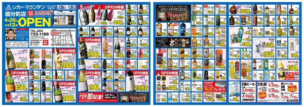 全国で180店舗の店舗展開を行う酒専門小売チェーン 株式会社リカーマウンテン(本社:京都市)は2021年4月26日(月) 午後12時に新規OPENする「リカーマウンテン国分町店」の目玉企画として「ウイスキー100万円福袋」を1セット限定で抽選販売いたします。