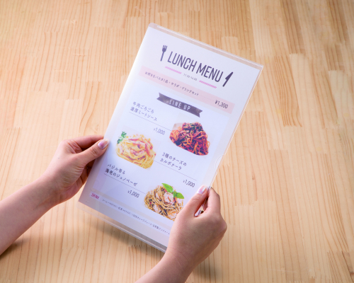 程よい硬さがあり、軽くて扱いやすいセミハードタイプ。メニュー表や掲示物など幅広い用途でお使いいただけます。書類を入れるだけで簡単に作成でき、中身を入れ替えて繰り返し使うことができます。