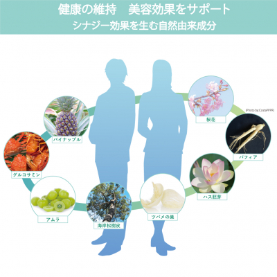 *4 MAI-BIOエキス(乳酸菌・納豆菌・酵母の共棲発酵産物末)、酵素処理燕窩末、海岸松樹皮エキス末、パフィア抽出液、ハス胚芽エキス末、N-アセチルグルコサミン、アムラ果実エキス末、桜の花エキス末、パイナップル果実抽出物