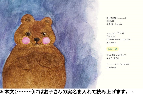 1、子どもの実名を絵本の本文に入れ込んで朗読するので、子どもが物語に入りやすいこと。