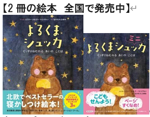 2021年3月に発売し、発売前日からAmazon絵本ランキング1位2位を独占した”寝かしつけ絵本”『よるくまシュッカ』の初版完売を記念して、プロの話し手による“読み聞かせワークショップツアー”を全国の書店で開催いたします。この絵本は、子どもの名前を絵本の本文に入れて朗読するので、子どもが物語に入りやすい特徴があります。また、著者エミリー・メルゴー・ヤコブセンは、幼児教育の学位を持ち、瞑想の実践者なため、本文には、「瞑想の呼吸法」を取り入れた仕掛けが随所にあります。