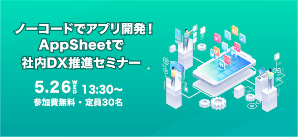 本セミナーでは、ノーコードとは何かを知り、社内DXを推進していくためにノーコードをどのようにして活用していくのか、AppSheetの基本的な使い方や活用事例など、実演を交えて解説いたします。