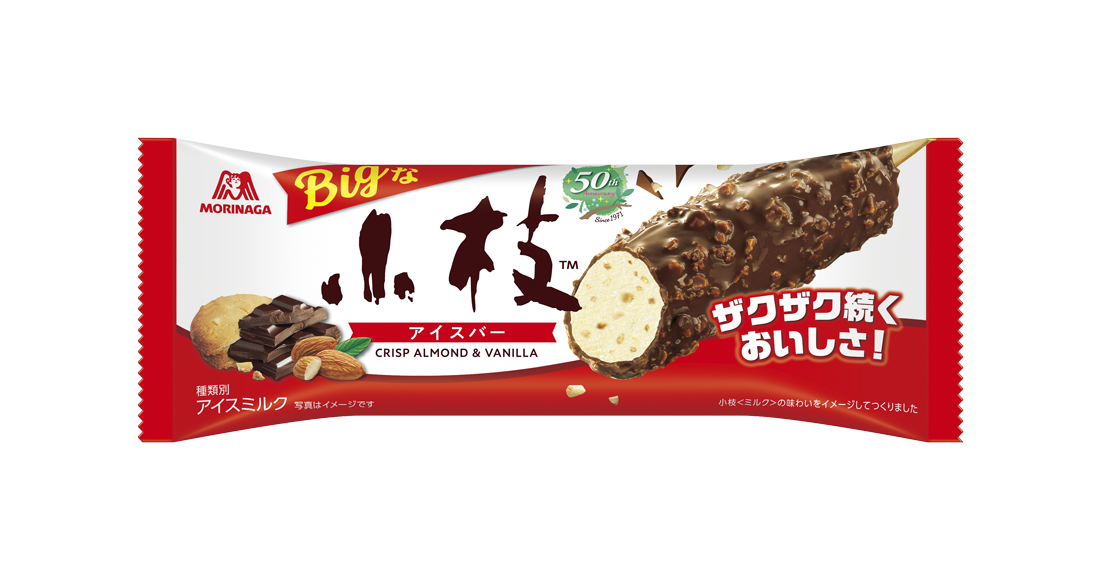 ◇商品特長:クランチアーモンド入りのバニラアイスをクランチアーモンド&ビスケット入りのチョコレートでコーティングし、ザクザクした心地よい食感を楽しめる小枝をイメージしたバーアイス