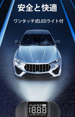 小型設計で持ち運びや収納に便利、5000mAhのリチウムイオン電池とLEDライトが夜間の作業を可能にしてくれるポータブルエアーポンプです。