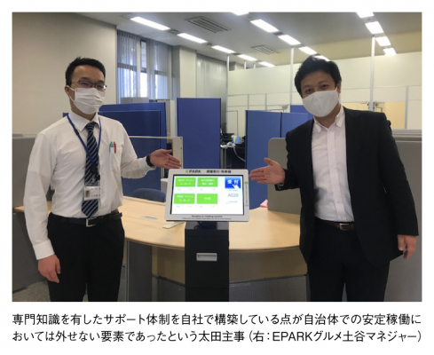 公募入札のためコストや機能面での条件をクリアしていることは前提として、発券と呼び出し機能を備えた類似製品には、安価だがサポート体制に不安が感じられたり、保守領域を自社では全く対応していなかったりという企業が多い中、EPARKでは24時間365日体制のコールセンターや自社でのサポート保守体制を構築しており、アフターフォローが手厚いという点が自治体での長期安定稼働を優先していくにあたり重要な決め手となった。