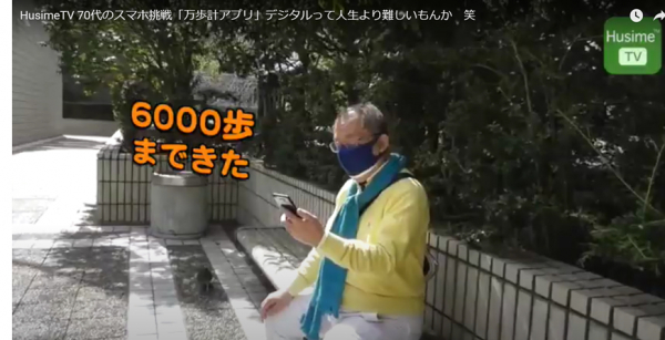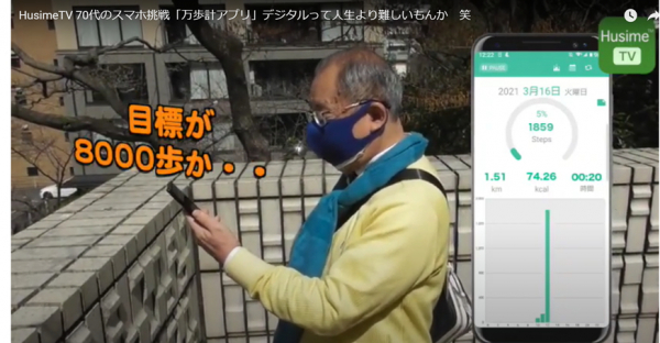 ▼HusimeTV 70代のスマホ挑戦「万歩計アプリ」デジタルって人生より難しいもんか 笑