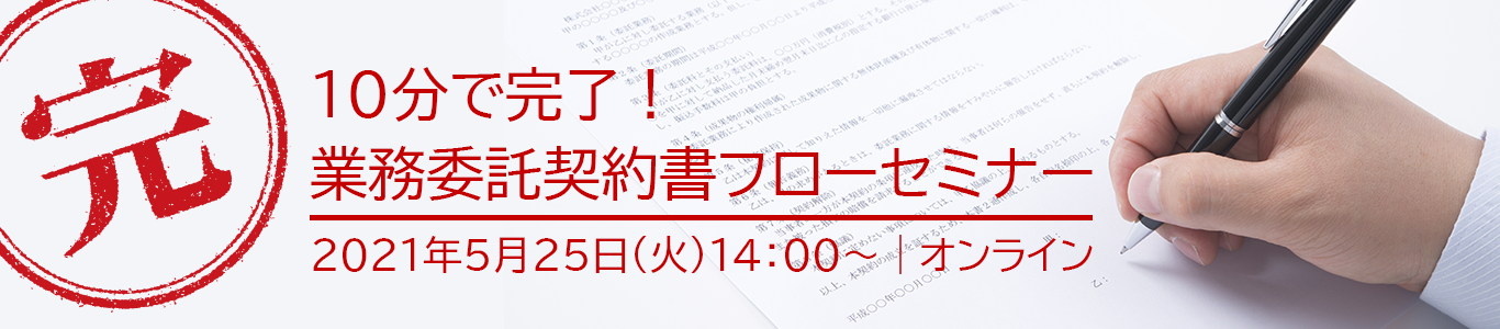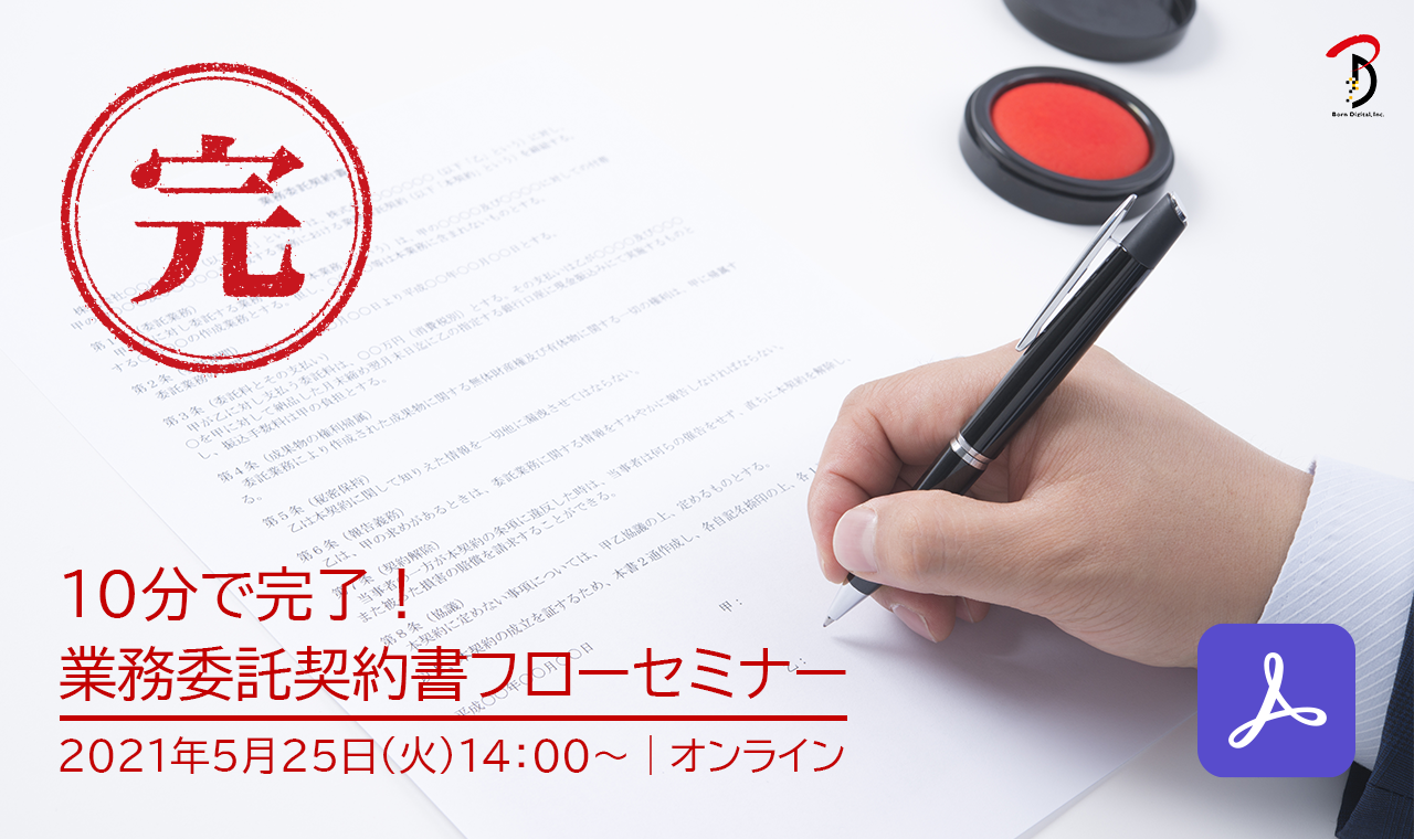 株式会社ボーンデジタル(東京都千代田区、代表取締役 村上 徹)は、2021年5月25日(火)に、オンラインセミナー「10分で完了!業務委託契約書フローセミナー」を開催します。