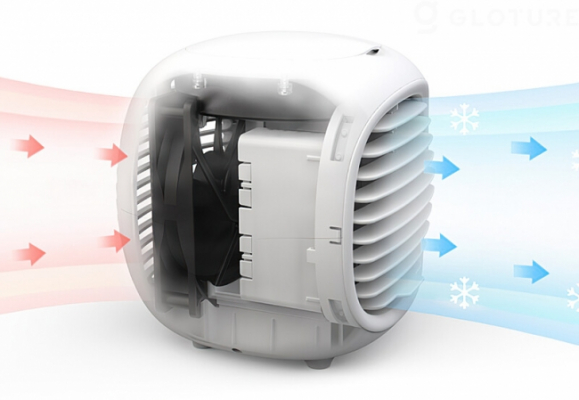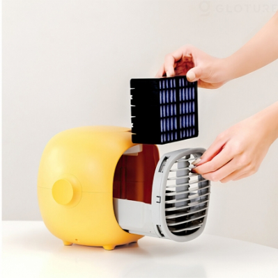 「HBLINK レモン型加湿扇風機」は高密度の防塵フィルターを備えています。背面の大型ファンが周囲の高温空気を取り込み、空気が防塵フィルターを通過する際に気化熱で冷却して冷風をもたらします。エアコンとは異なり自然な冷風を得ることができます。