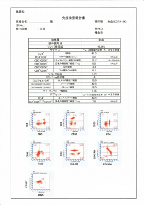 (検査項目:CTL/Tレグ比率、ナイーブT/メモリーT比率、CTL/NK/NKT/CD8+NK/活性化T/ナイーブT/メモリーT/Tレグ/活性化Tレグなど)