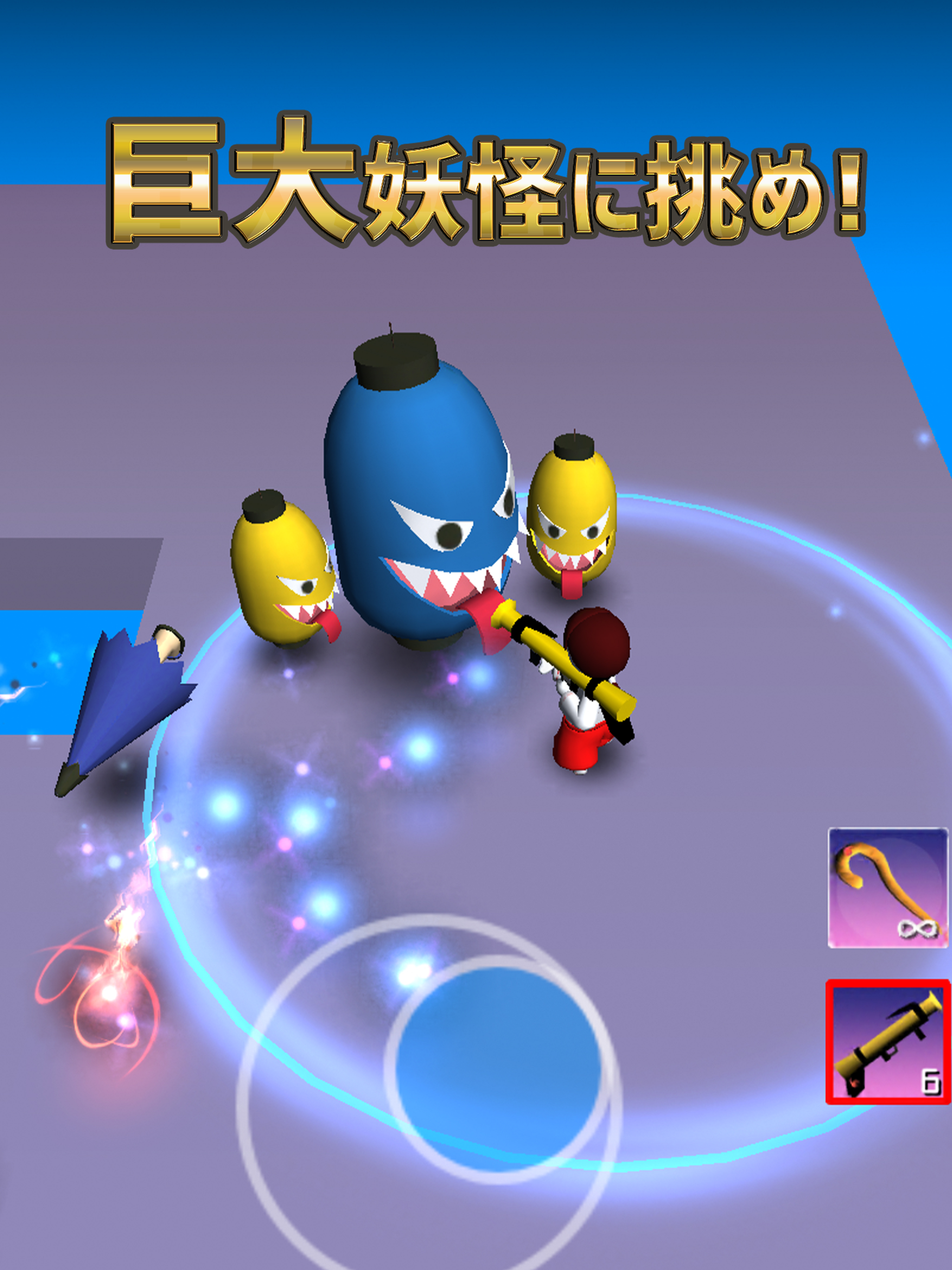 『妖怪バトル』は、誰でもちょっとした隙間時間で簡単に楽しめるゲームプレイ体験と、スキンコレクションやレベルアップなど、何度もプレイしたくなる要素を盛り込んだ、スマホ専用アクションシューターです。プレイヤーがレベルアップすると妖怪たちも手強くなり、状況に合わせて武器を切り替えたり、敵の攻撃をうまくかわしたりしながら、ステージをクリアするチャレンジを手軽にお楽しみいただけます。