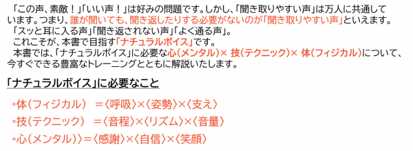 「ナチュラルボイス」のためのトレーニング 例 ※一部抜粋要約