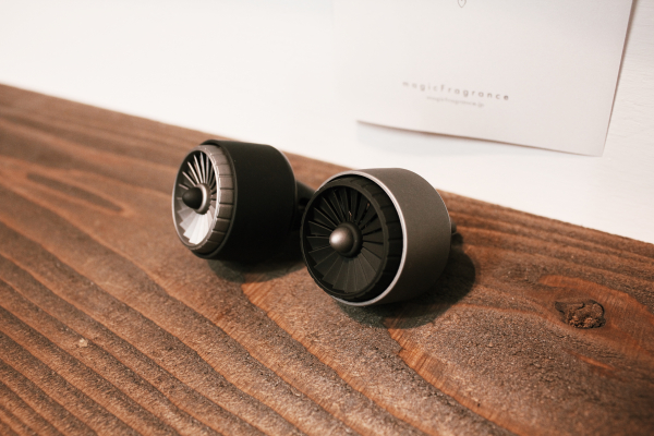 ・使用方法:航空機のエンジンを想像させるフォルムのディフューザーは、中にセラミック製のストーンが入っており、そこにオイルを数滴垂らし、エアコンディショナーの送風口に取り付けて使用します。