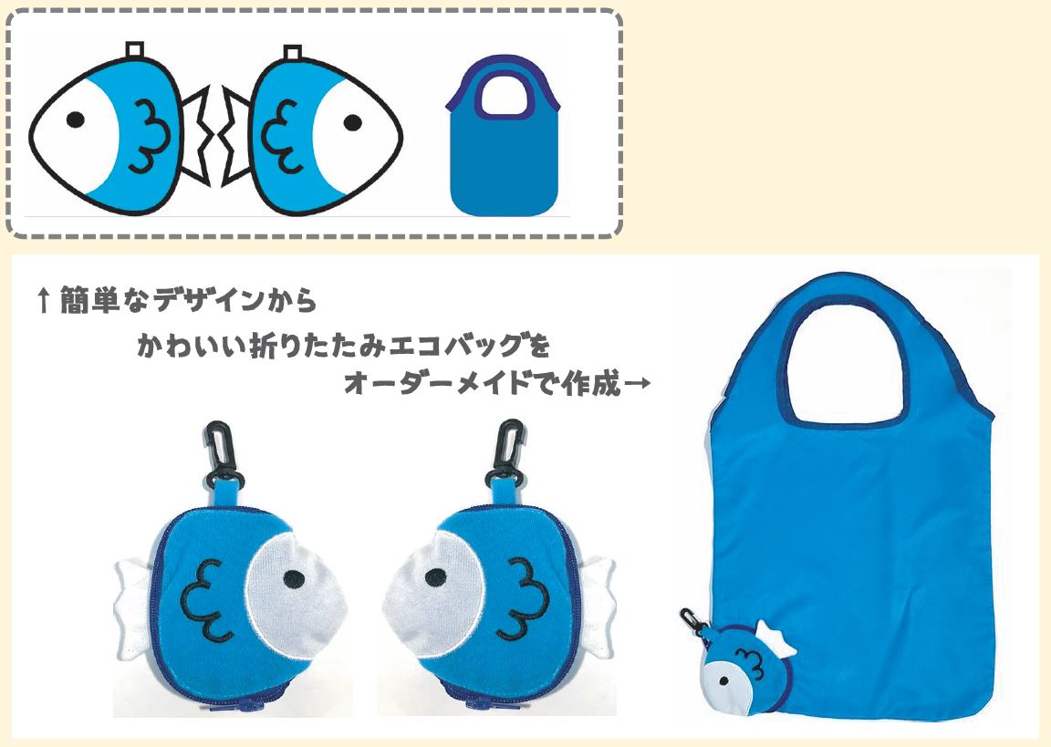 『PLUSH BAG(プラッシュバッグ)』では、普段は折りたたんでマスコット状態で携帯でき、買い物時にはファスナーを開いてエコバッグとして利用できる、新しいエコバッグを開発しました。(2021年5月意匠登録済)