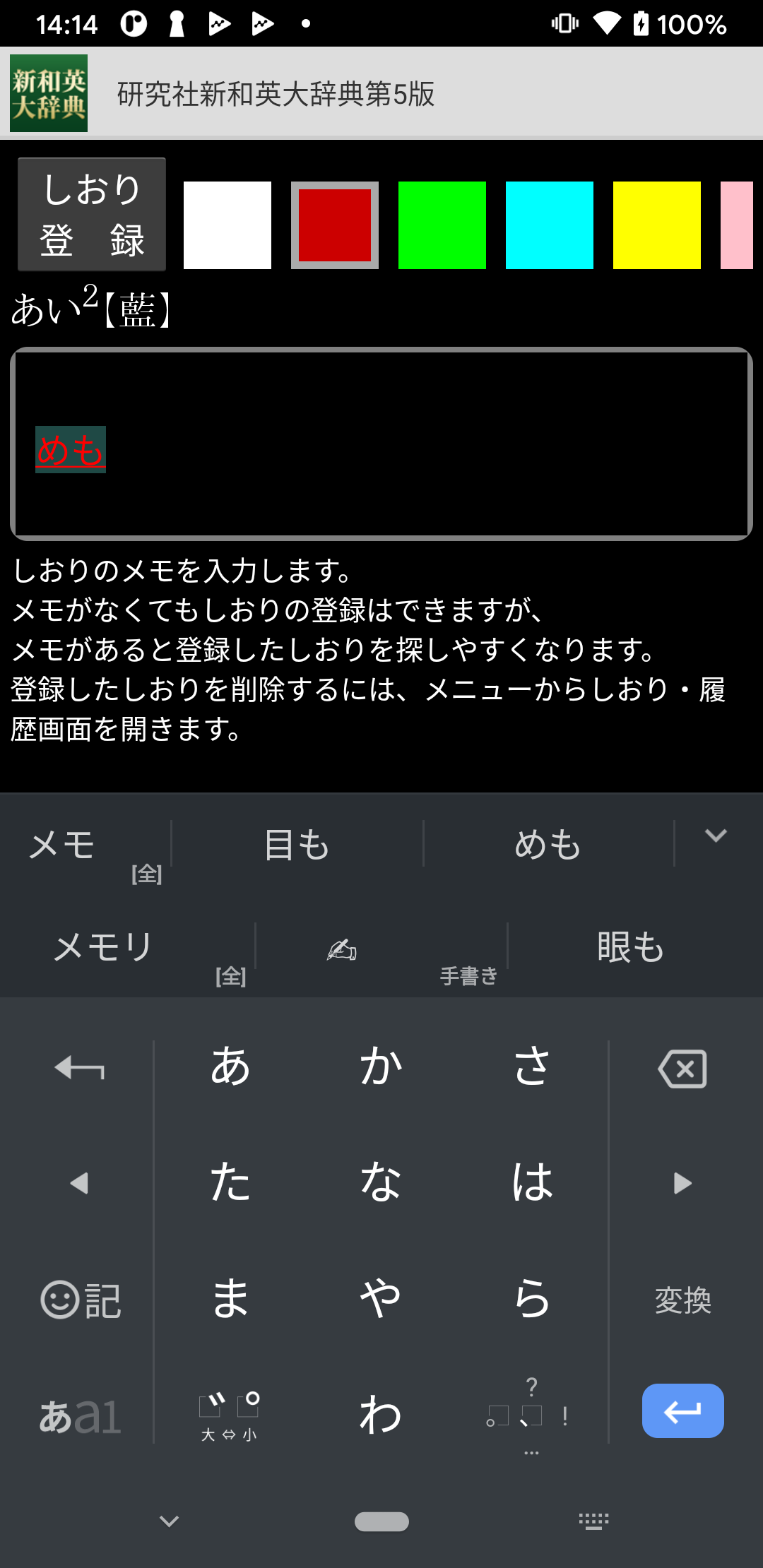 ・辞典項目には、いつでもしおりを登録できます。