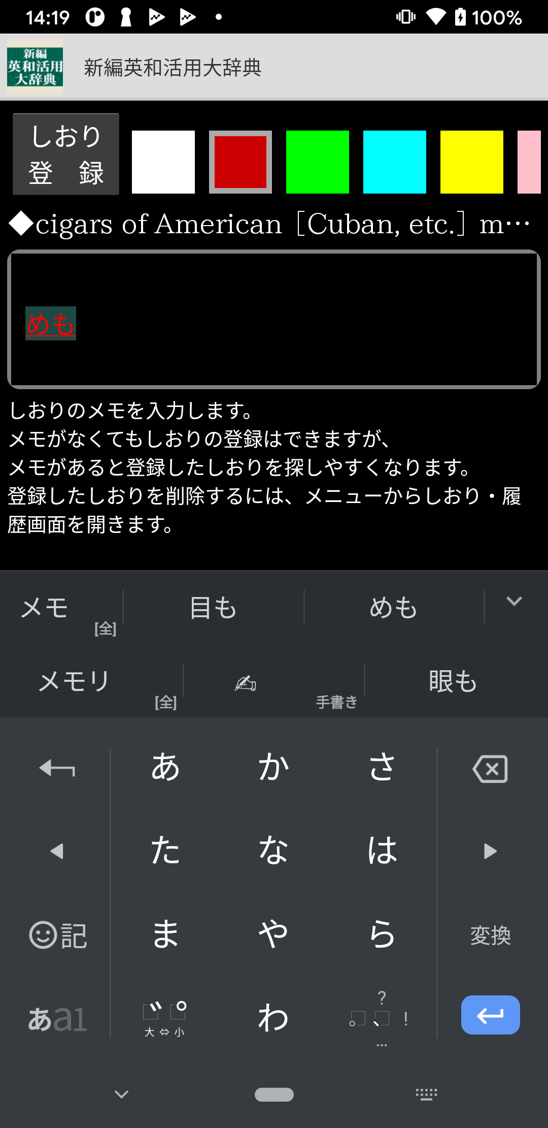 ・辞典項目には、いつでもしおりを登録できます。