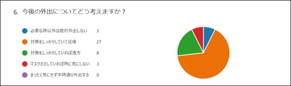 「対策をしっかりしていれて近場」(交通機関を極力使わない)が全体の65.8%と圧倒的に表を集めた。今後は、都市圏や繁華街には出ないが、地元の商業施設や近所の公園に人が集まる傾向になりそうだ。