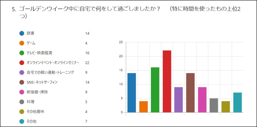 コミュニケーションスクール「コミュトレ」の受講生であるため、41名中21名が、「オンラインイベント・オンラインイセミナー」に参加しているという結果になった。