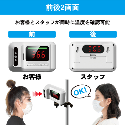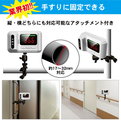 ・業界初!! 手すりやポールに固定できる非接触式温度計
