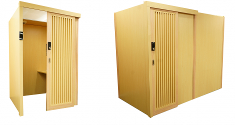 格子の開閉ドア・テーブル付き。単独でも連立でも設置でき、スペースに応じた設置が可能です。