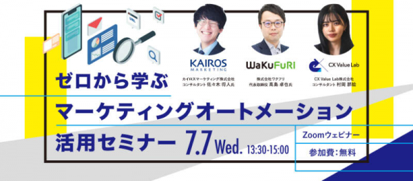 マーケティングオートメーション「Kairos3」を提供するカイロスマーケティング株式会社(本社:東京都渋谷区、代表取締役:佐宗 大介、以下「カイロスマーケティング」)は、2021年7月7日(水)に開催するウェビナー「マーケティングのプロ×業務改善のプロが徹底解説!ゼロから学ぶマーケティングオートメーション活用セミナー」に登壇いたします。