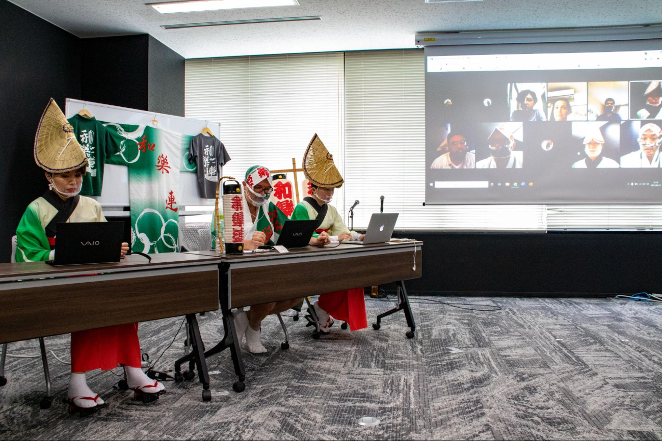 ワークショップ当日はオーストラリアの日本文化ファンをはじめ、国内の祭りファンと和樂連メンバーをオンラインでつなぎ、阿波踊りの演舞や祭りで役に立つ日本語を和樂連がレクチャーした他、日本の祭りや阿波踊りをテーマに英語で交流会を行いました。