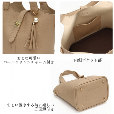上品なオリジナルパールチャーム付きで、ワンマイルのお出かけから通勤・セレモニーまでマルチに使えるアイテム。