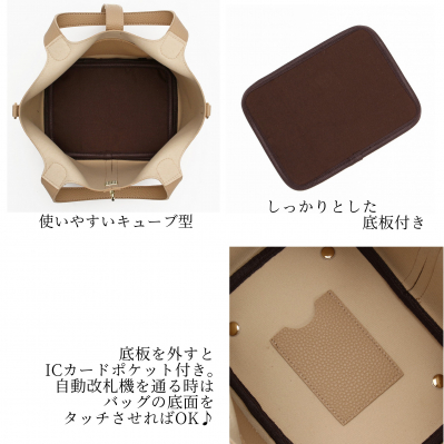 底板を外すとICカードポケットがあり、自動改札機を通るときはバッグの底面をタッチさせるだけでOK。