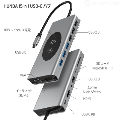 株式会社Gloture(本社:東京都港区、代表取締役:CHEN JUNYI)は、GREEN FUNDINGにて、4K & 急速充電対応のワイヤレス充電もできるUSB-C拡張ハブ「HUNDA 15 in 1 USB-C ハブ」のクラウドファンディングを本日より開始いたします。