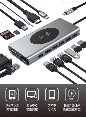 9種類合計14個のポートが備わっているから、これ一つであらゆる仕事や作業に対応できちゃいます。