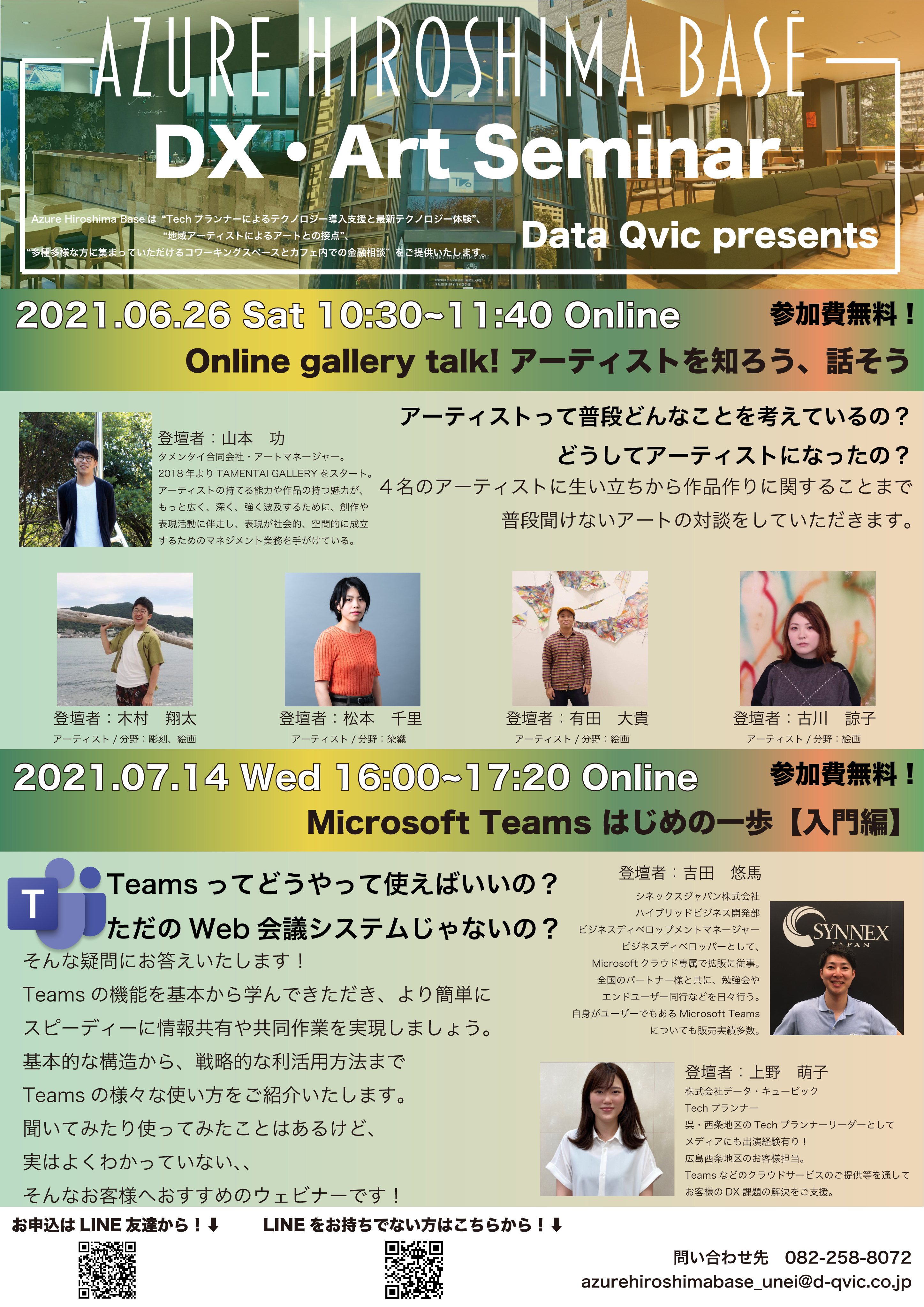 このイベントは、データ・キュービック社が運営する地域のデジタルトランスフォーメーション(DX)推進施設「Azure Hiroshima Base」(広島県広島市中区)において、弊社がディレクションを行った展示(https://tamentai-gallery.art/blogs/news/azure-hiroshima-base-202103)に関連したもの。同施設では、DX推進と並んで「地域アーティストによるアートとの接点」としての機能も打ち出しており、その一環として開催されます。