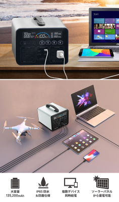 ◎ 容量は135,200mAh!ノートPCも10台をフル充電できる大容量♪