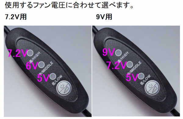 ■同様の機能を持つコントローラーはUSB電源を昇圧するものやPWMと呼ばれるパルスコントロールによって電圧を可変するもがありますが、製品自体が発熱する、ファンが回らない、風量が弱いなどの問題がありました。