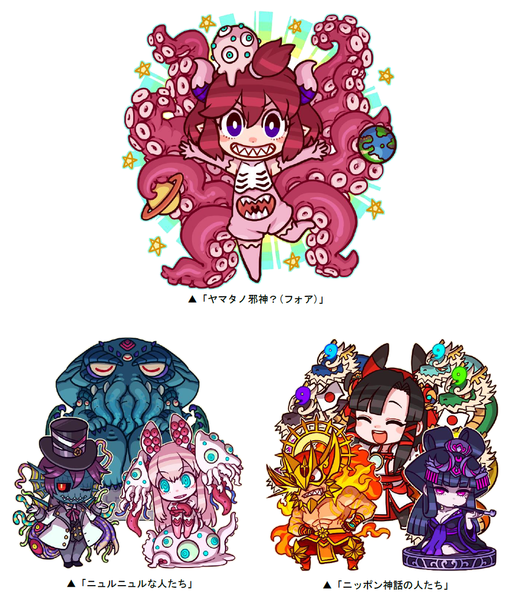 また、道中には「ニュルニュルな人たち」「ニッポン神話の人たち」「傲慢暴食憤怒怠惰な人たち」「強欲色欲嫉妬な人たち」「竜騎士ドラグーンな人たち」「伝説のアウトローな人たち」「探検家フォア」などが出現し、クリアした際に手に入る「絵本P」を貯めると、ポイントに応じてDRAレア「ヤマタノ邪神?(フォア)」「伝説の地球竜?(フォア)」「探検家フォア」と交換することができます。