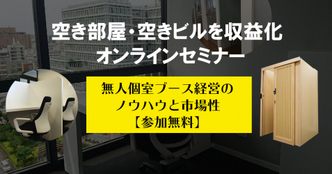 [セミナー概要]個室ワークブース・レンタルオフィス市場の将来性や無人化運営のノウハウをお伝えするセミナーです。無人運営ビジネスの始め方から運用まで、ワークスペース事業を成功させるための3つのポイントをテーマに、実状とノウハウをお話いたします。