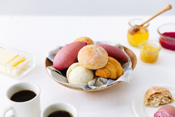 「Pan&(パンド)」とは、国産小麦・自家製の発酵種<桐生酵母>などの厳選素材を使用し、群馬県桐生市で焼きあげたパンをそのまま瞬間冷凍することで、おいしさを閉じ込めた冷凍パンブランドです。冷凍という手法を用いることで、常温によるでんぷんの劣化と水分の蒸発を止めることができるため、食べたい時に、自宅のトースターでリベイクするだけで「食べるその時が焼きたて」をお楽しみいただけます。