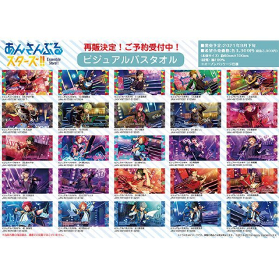 株式会社リアライズ(本社:東京都台東区)は、6月24日から、アニメ・漫画専門ECサイト「アニTマーケット」にて『あんさんぶるスターズ!! ビジュアルバスタオル(製造メーカー:株式会社エンスカイ)』の予約販売を開始いたしました。予約期間は、7月1日までとなっています。商品URL → https://is.gd/H7HuWU