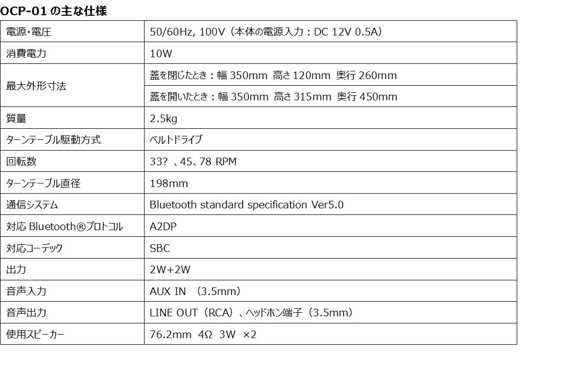オンキヨーグループの事業会社であるオンキヨーホームエンターテイメント株式会社(所在地:大阪府東大阪市、代表取締役社長:大朏 宗徳)は、クラウドファンディングで支援者2,500人、支援額2,400万円を達成したオンキヨーブランドの新しい商品シリーズ 「Onkyo Classic Series」 の第一弾となるBluetoothスピーカー内蔵ポータブルターンテーブル「OCP-01」を、2021年7月7日より一般発売を開始いたしますことをお知らせいたします。