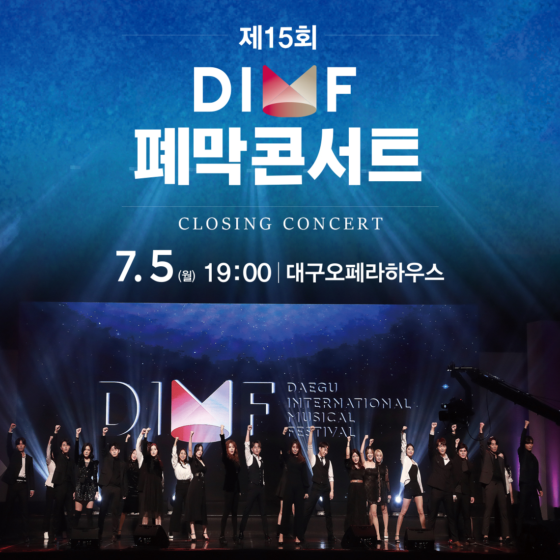 フィナーレを飾る『第15回DIMF閉幕コンサート』は、韓国トップのミュージカル俳優とDIMFが発掘した次世代ミュージカルスター12人による豪華ラインナップのガラコンサートとして、ミュージカルの名曲は勿論、数多くのヒット作を誕生させた作曲家であり、音楽監督でもあるチャン・ソヨンと幻想的なハーモニーを誇る16人組TMMオーケストラがさらなる至福の時間をお届けする。