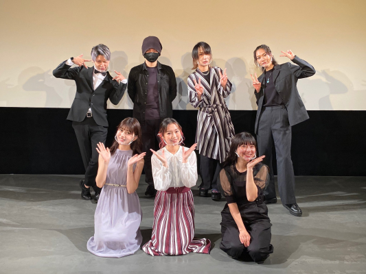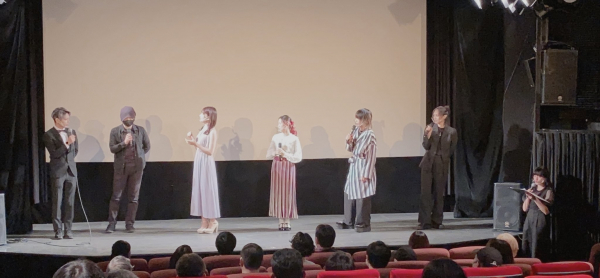 7月3日(土)初回の上映会が渋谷ユーロライブにて開催されました。当日、舞台挨拶に、出演者の「堀越せな」「ルウト」「白石まゆみ」「間瀬翔太」「桜町たろ」、MCの「旭桃果」、そして監督の「松本了」が登壇しました。