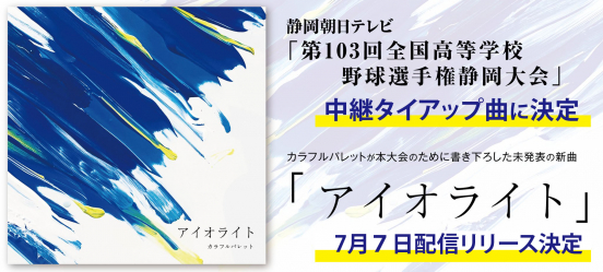 この曲はカラフルパレットが今大会のために書き下ろした新曲で、白球を追いかける高校生の背中を押すような歌詞、アップテンポなメロディーをロックなアレンジに乗せたナンバーです。